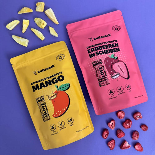 Heute verlosen wir ein leckeres Snack-Paket mit gefriergetrockneten Erdbeeren und gefriergetrockneter Mango von Kultsnack . Viel Erfolg! 🍀