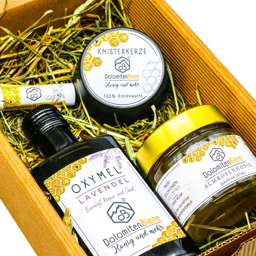 Heute kannst du eins von zwei Geschenkboxen von Dolomitenbiene gewinnen. Im Set enthalten ist eine Knisterkerze, Oxymel Lavendel, Propolis Lippenbalsam und Almrosenhonig. Viel Glück! 🍀