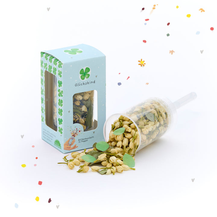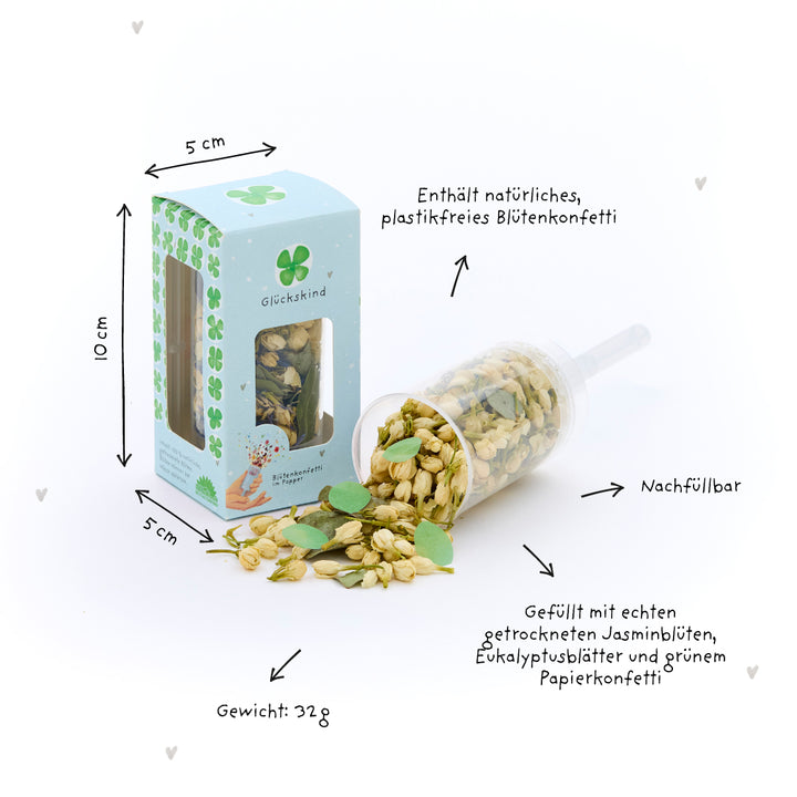 🍀 Glückskind - mit einer Extraportion Glück: Ob Schulabschluss, Prüfungsstress, Jobbeginn oder Umzug - dieser Blütenkonfetti Popper mit der Aufschrift "Viel Erfolg, du Glückskind" ist das ideale Geschenk für alle, die vor einem neuen Kapitel stehen. Voller Mut, positiver Energie & einem Schuss Konfettiglück.