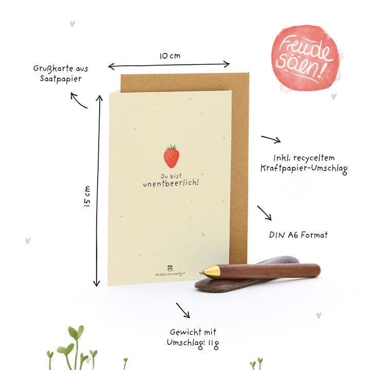 Nachhaltig & plastikfrei: Die Karte besteht aus kompostierbarem Saatpapier, der Umschlag aus Kraftpapier, die Hülle ist biologisch abbaubar - ein besonderer Gruß mit Herz und Wirkung.