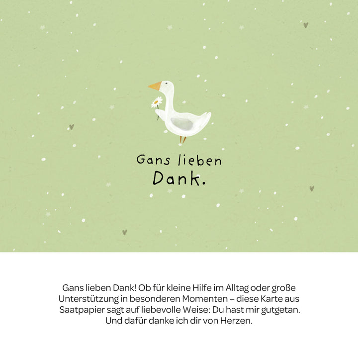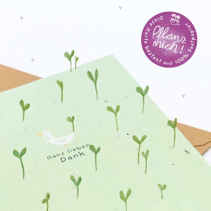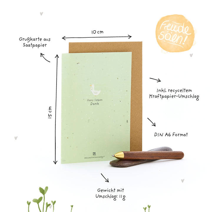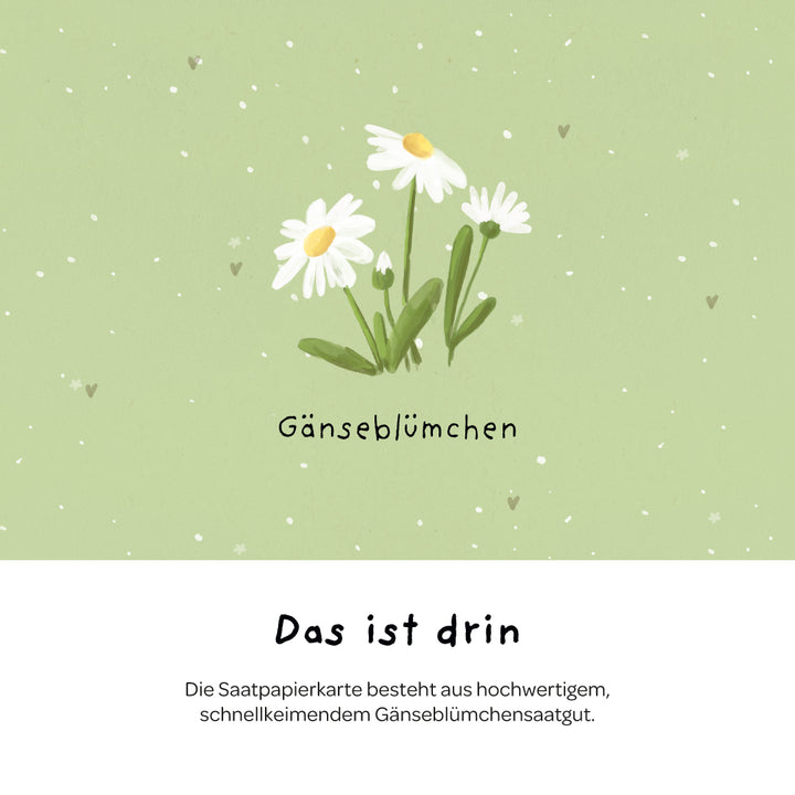 Dankbarkeit, die weiterblüht: Aus dem Saatpapier sprießen schon bald zarte Gänseblümchen - als liebevolles Dankeschön, das nicht nur von Herzen kommt, sondern auch zum Schmunzeln einlädt. Denn manchmal sagt ein Gänseblümchen mehr als tausend Worte - und ein gans lieber Gruß bleibt besonders lange in Erinnerung.