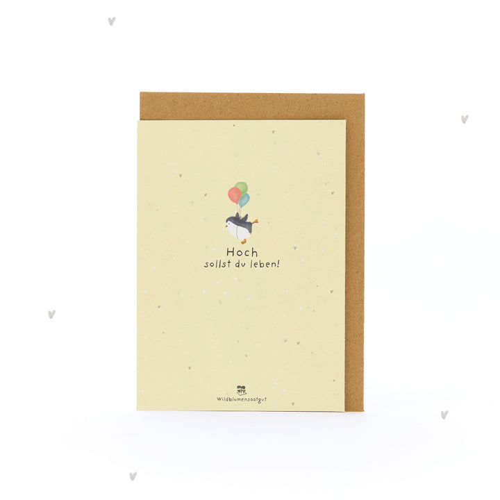 Grußkarte "Hoch sollst du leben" Wachsende Geburtstagskarte aus Saatpapier mit Wildblumensaatgut | Fröhliche Grußkarte zum Geburtstag für Freunde, Familie oder Kollegen | Klappkarte zum Hochlebenlassen inkl. Kraftpapier-Umschlag | 10,5 x 14,8 cm (DIN A6)