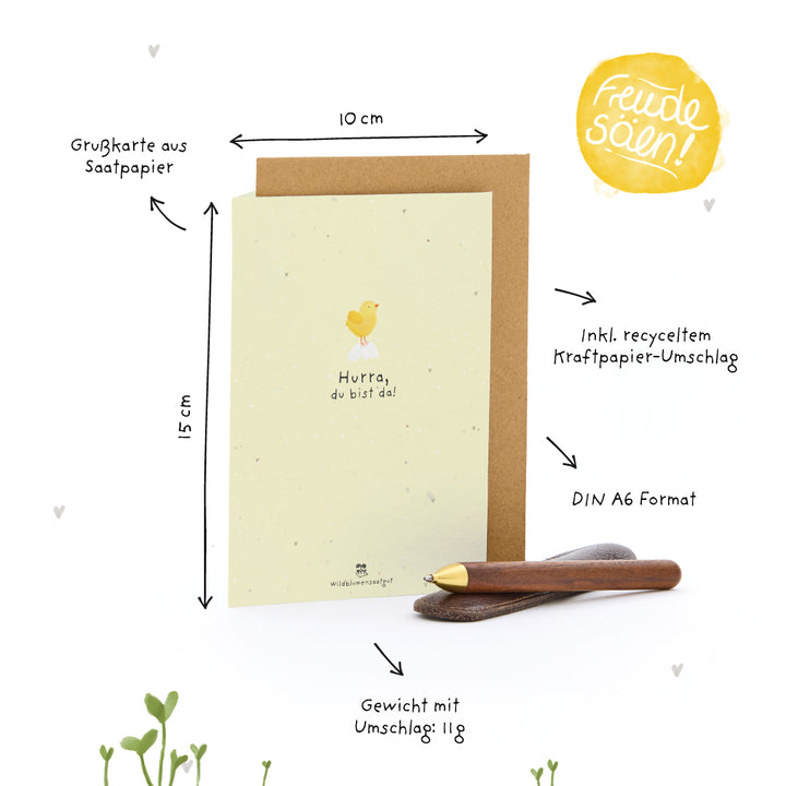 Grußkarte - Hurra, du bist da!