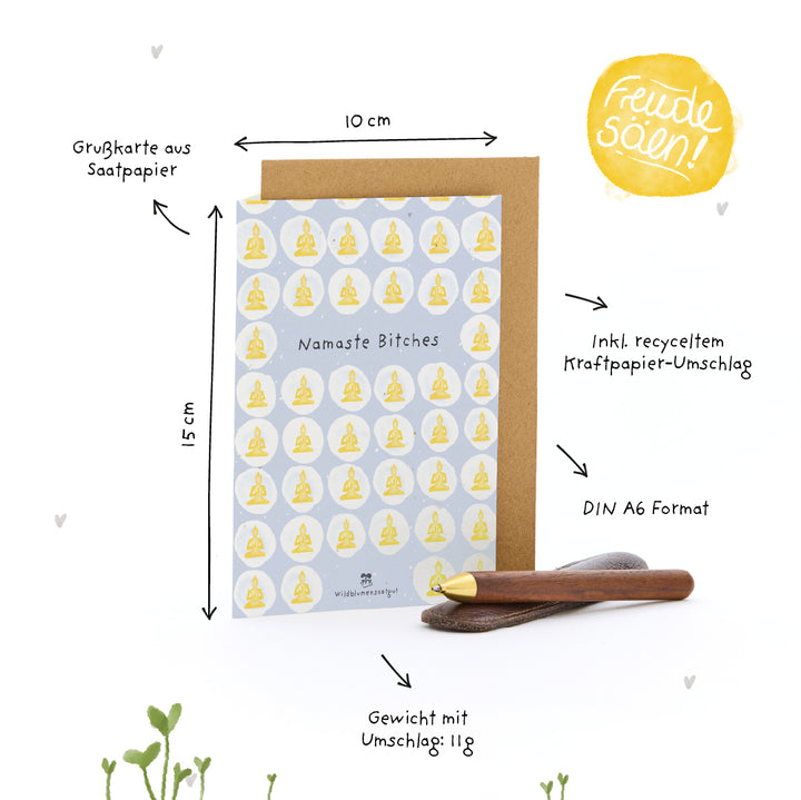 Nachhaltig & plastikfrei: Die Karte besteht vollständig aus Saatpapier, der Umschlag aus robustem Kraftpapier und die Schutzhülle aus biologisch abbaubarem Kunststoff. Ein Geschenk, das nicht nur Freude macht, sondern auch die Welt ein bisschen grüner.
