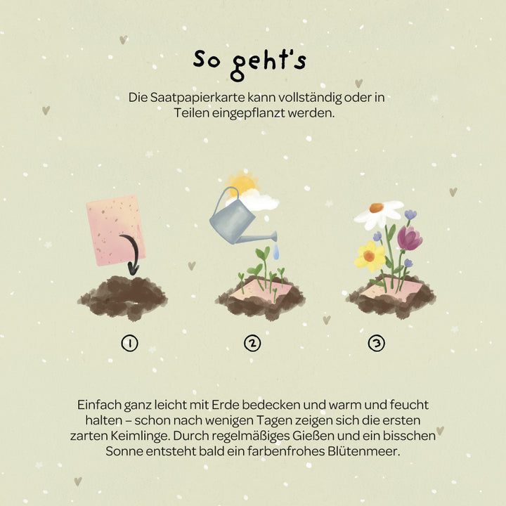 Nachhaltig & plastikfrei: Die Karte besteht vollständig aus Saatpapier, der Umschlag aus robustem Kraftpapier und die Schutzhülle aus biologisch abbaubarem Kunststoff - für Glückwünsche, die gut für Mensch und Natur sind.