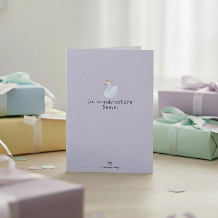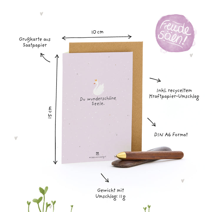 Nachhaltig & plastikfrei: Die Karte besteht aus kompostierbarem Saatpapier, der Umschlag aus Kraftpapier, die Hülle ist biologisch abbaubar - ein achtsamer Gruß, der Herz und Natur verbindet.