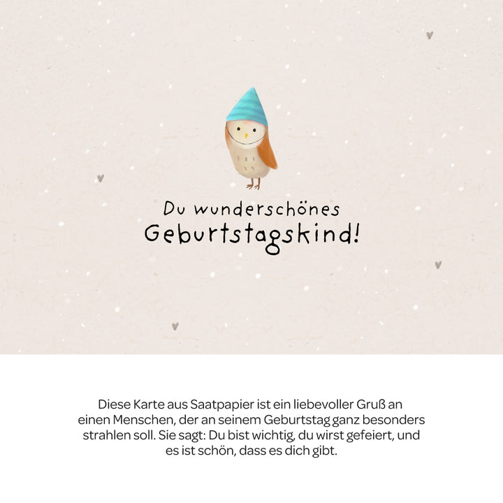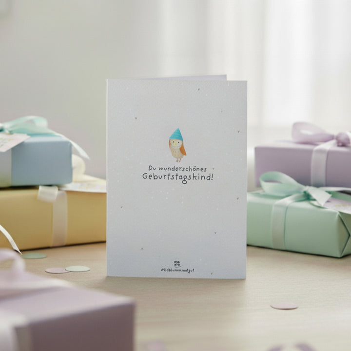 Nachhaltig & plastikfrei: Die Karte zum Geburtstag ist aus kompostierbarem Saatpapier gefertigt, der Umschlag aus Kraftpapier, die Hülle biologisch abbaubar - ein Geschenk mit Herz und Wirkung.