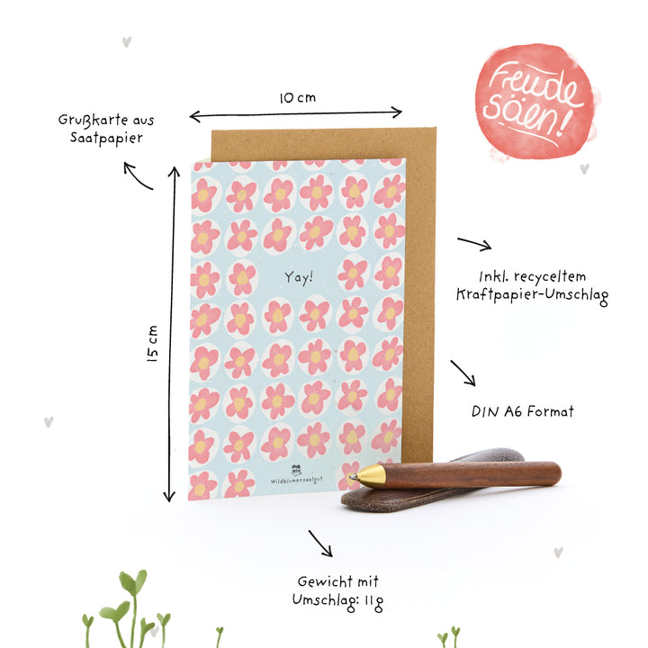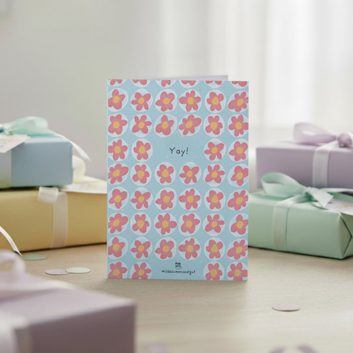 Yay - wie schön, dass es etwas zu feiern gibt! Diese Karte ist der perfekte Gruß für alle kleinen und großen Erfolgsmomente. Ob bestandene Prüfung, Geburtstag, neuer Job oder einfach ein Grund zur Freude - sie sagt: Ich freu mich mit dir!