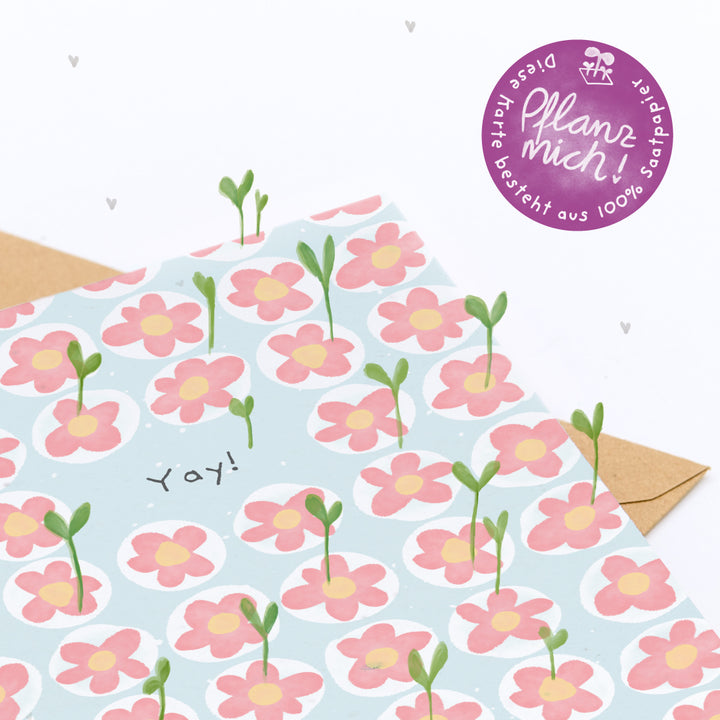 Einfach einzupflanzen: Die Karte kann im Ganzen oder in Stücke gerissen eingepflanzt werden. Mit Erde, Wasser und Sonne entsteht ein buntes Blütenmeer - als fröhliche Erinnerung an diesen besonderen Moment.